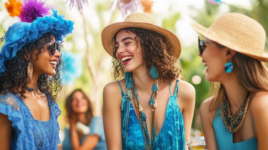 Accessories for casual daytime events should prioritise both function and style, with sun protection playing a key role in summer styling. Oversized sunglasses in classic shapes like cat-eye or rounded frames add a touch of glamour to even the most relaxed outfit, while also serving the practical purpose of shielding your eyes from bright morning light. A wide-brimmed straw hat not only provides additional sun protection but also creates an instantly recognisable bohemian silhouette that photographs beautifully. When selecting these accessories, consider how they work together rather than in isolation, ensuring that the scale and style of your sunglasses complement your hat choice rather than competing for attention. Neutral tones in accessories allow your sky blue dress to remain the focal point while still adding layers of interest to your overall look, creating the effortlessly chic aesthetic that makes bohemian styling so enduringly appealing.